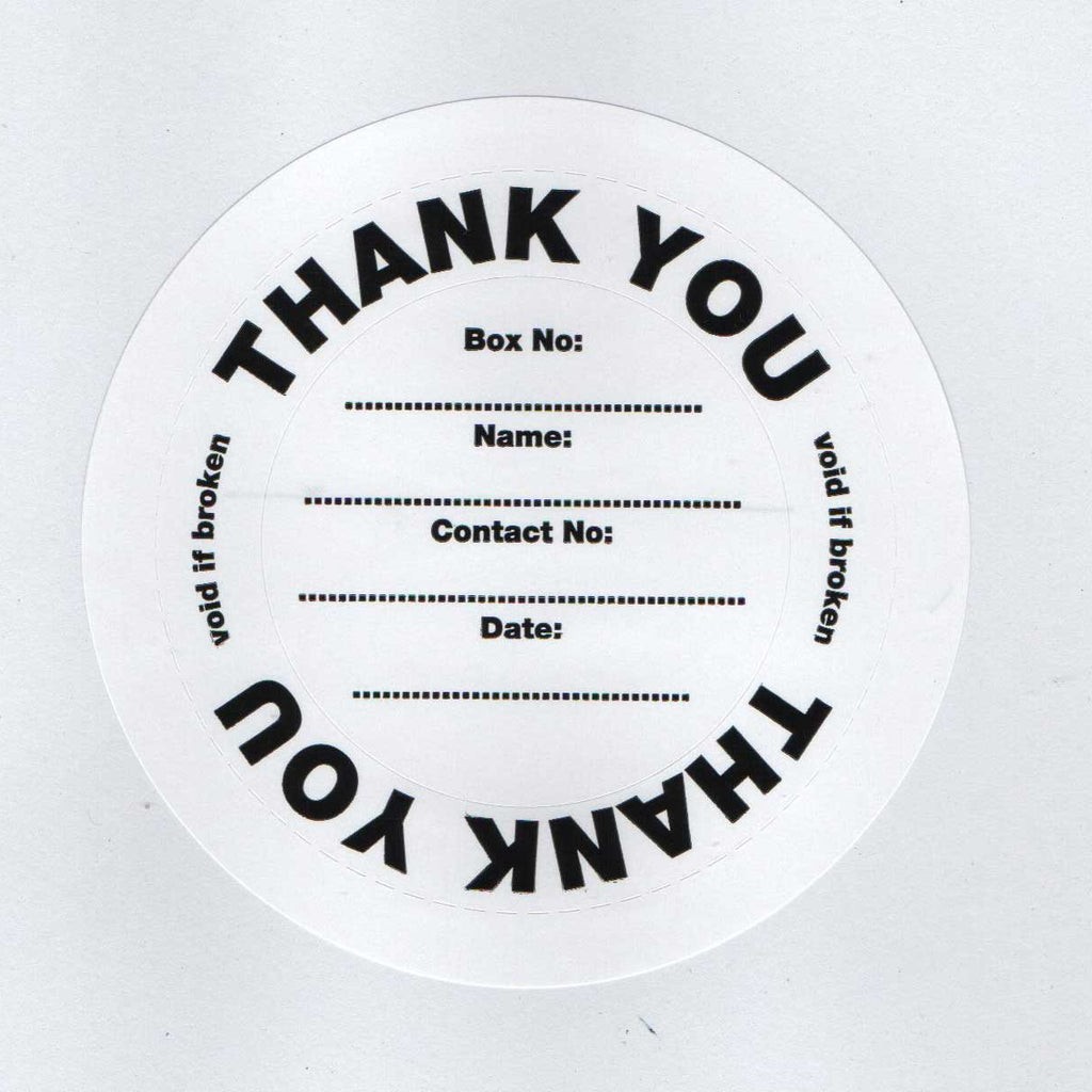 The outer section of the label with the words "Thank You" sticks to the top of the Eco collection boxes. The inner section of the label (circular label 5cm diameter) can be stuck to the bottom of the pot to record Box Number, Name, Contact number and Date.
