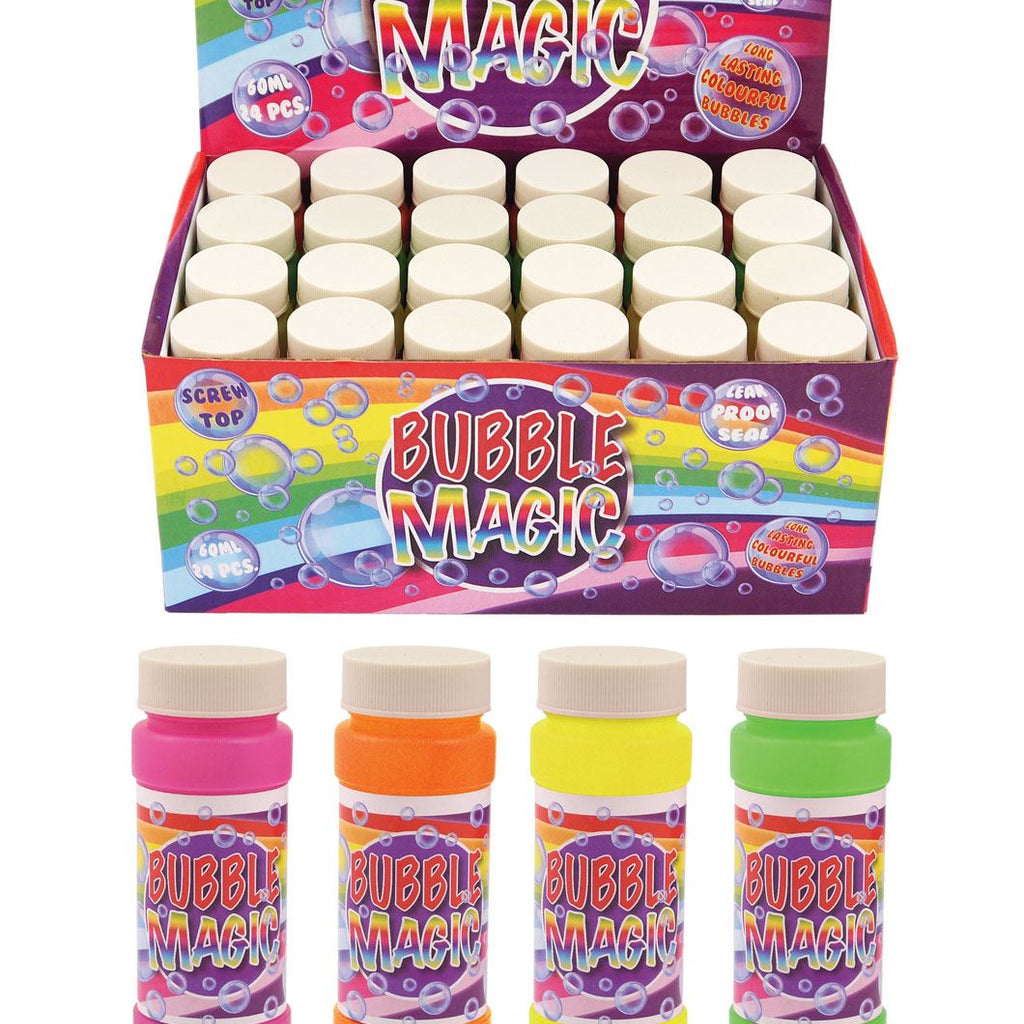 24 fun blow bubble tubs, producing long lasting colourful bubbles.