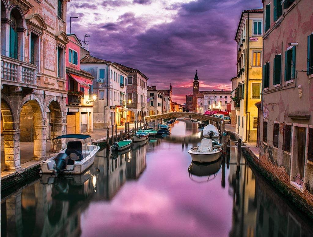 This stunning jigsaw puzzle features a Venetian calm canal, that passes by an amazing row of colourful and historic houses and buildings, that have been settled in this spot for many years. The canal is a wonderful way to get around, with bridges stretching over it to allow walkers to reach a new place in the city. The sky has turned a stunning shade of purple, that reflects on the tranquil water below. This looks like a magical place to explore and enjoy a spot of dinner too.
