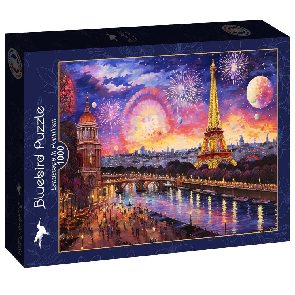 Landscape in Pontillism is a 1000-piece quality jigsaw puzzle from Bluebird.