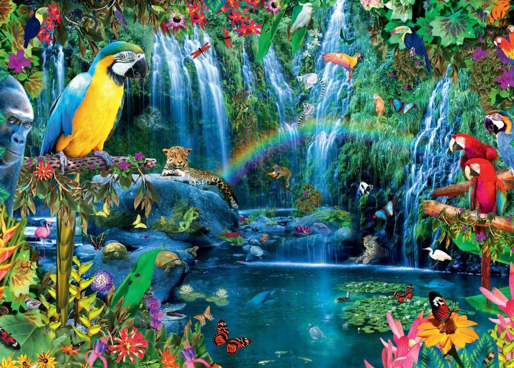 Parrot Tropics is a 500-piece quality jigsaw puzzle from Bluebird.