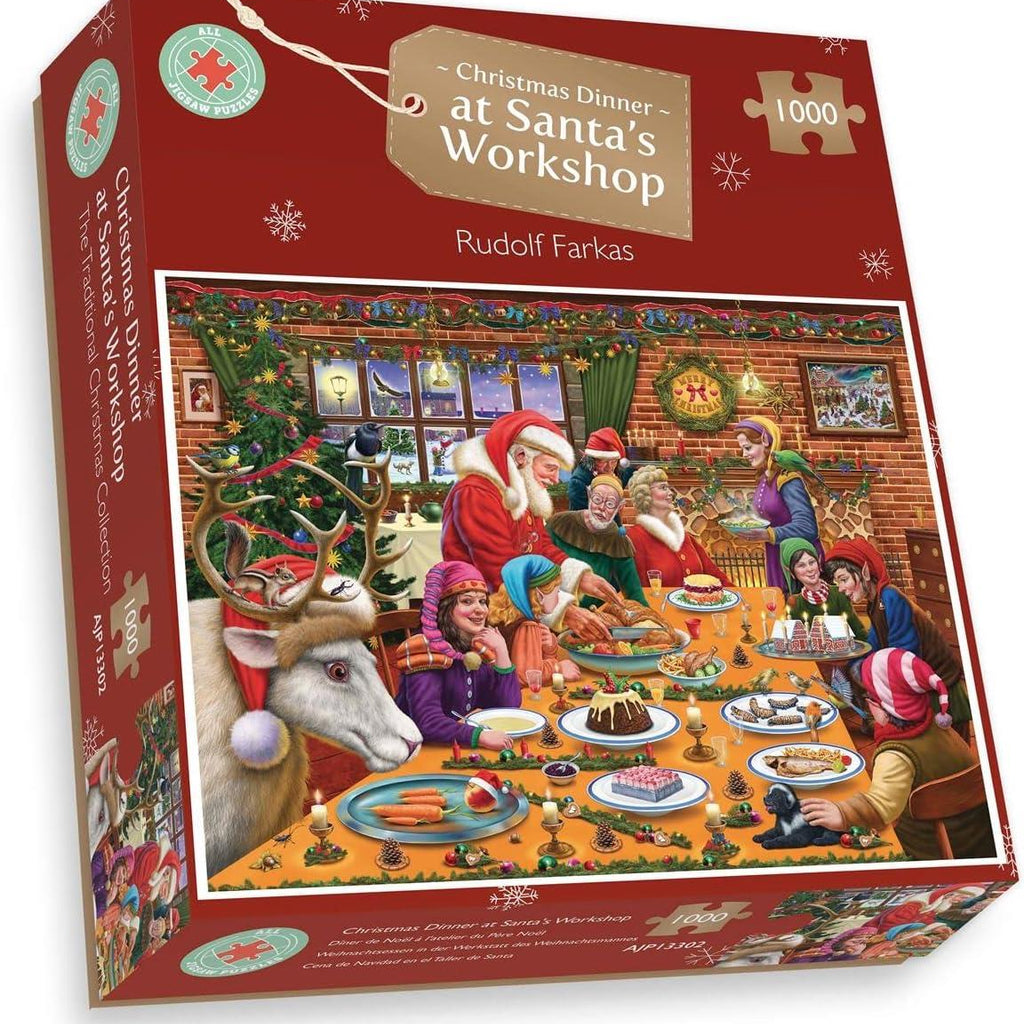 Christmas Dinner at Santa's Workshop is a 1000 piece quality jigsaw puzzle from All Jigsaws Christmas Collection.