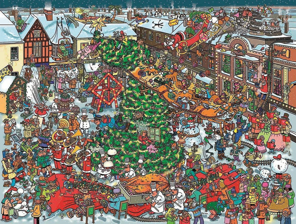 Christmas Street if full of festive fiascos. It's Christmas eve and this town square is packed full of festive folk all there to enjoy the Christmas merriment and tuck into a delicious dinner on the long and beautifully decorated table with their neighbours. But it's certainly not going to plan! To feed everyone, a humongous turkey has been prepared but is far too heavy for the table, bringing the entire thing crashing down, with plates and centerpieces going everywhere! Meanwhile, Santa's reindeer are going full pelt in order to get all the presents delivered, but they‚ve tangled themselves and the reigns in the gigantic Christmas tree in the haste of it all. In this scene, you will also find urban skiers, a drone postman, and a runaway toy train!