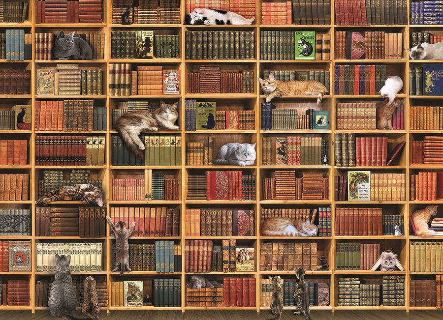 Cat Library is a premium quality 1000-piece jigsaw puzzle from Cobble Hill.