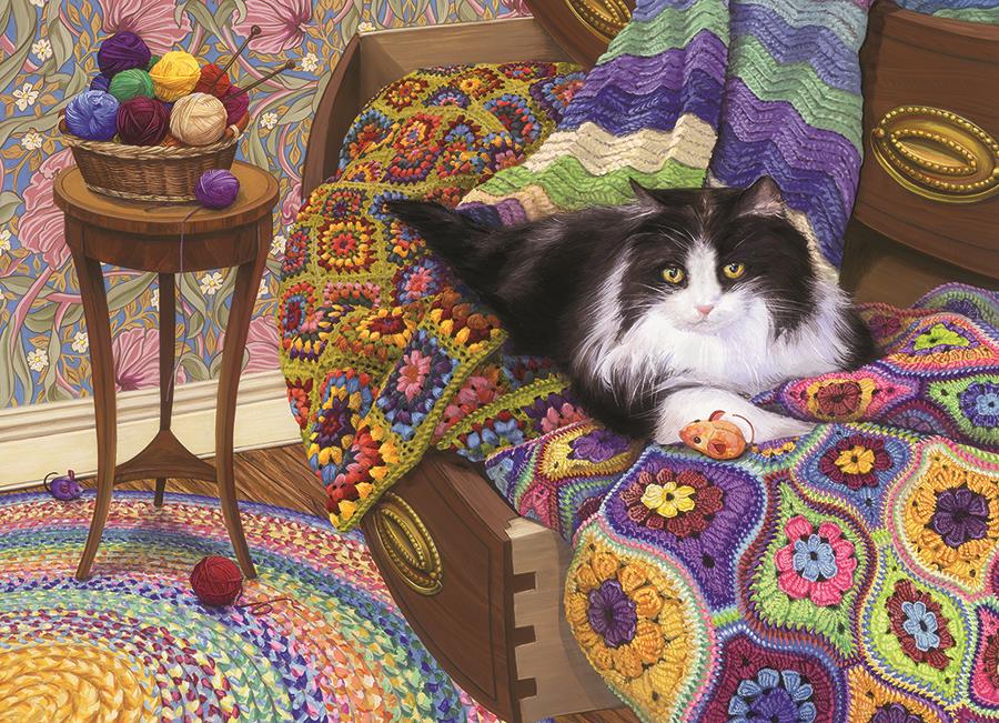 Comfy Cat is a premium quality 1000-piece jigsaw puzzle from Cobble Hill.