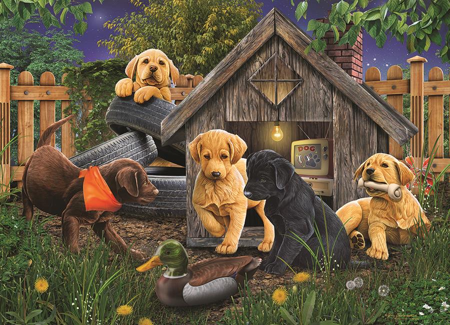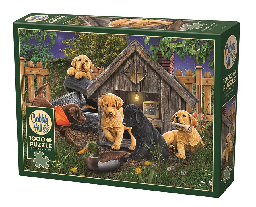 In the Doghouse is a premium quality 1000-piece jigsaw puzzle from Cobble Hill.