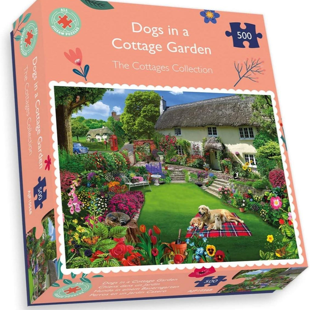 Dogs in a Cottage Garden - Jigsaw Puzzle (500 Pieces)