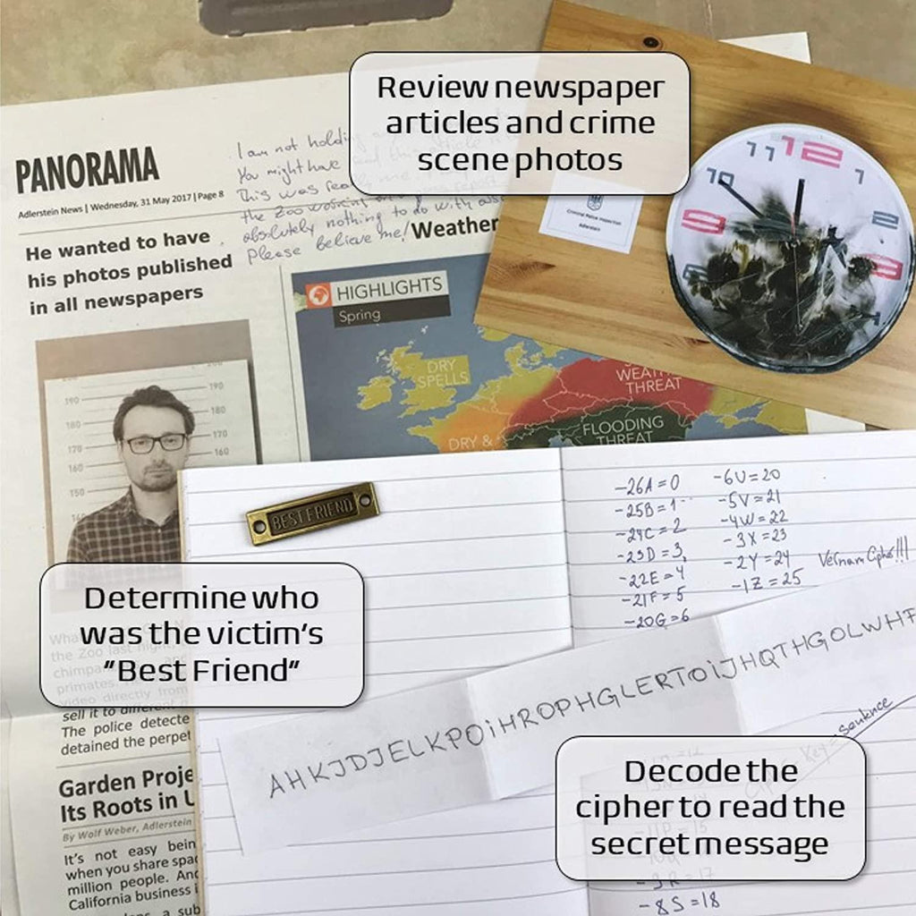 Contents: Victim & Suspect Photos, Crime Scene Photos, Newspaper Articles, Other Case Evidence, Online Hints & Solutions.