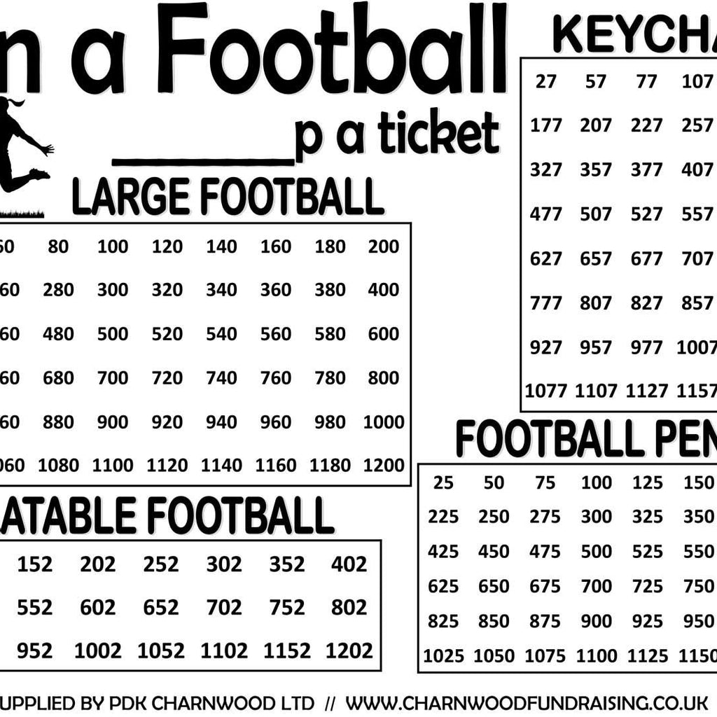Score a goal with this winning fundraiser! With 156 football themed prizes and a suggested ticket price of only 25p, your customers will hope to score by picking a winning ticket!
