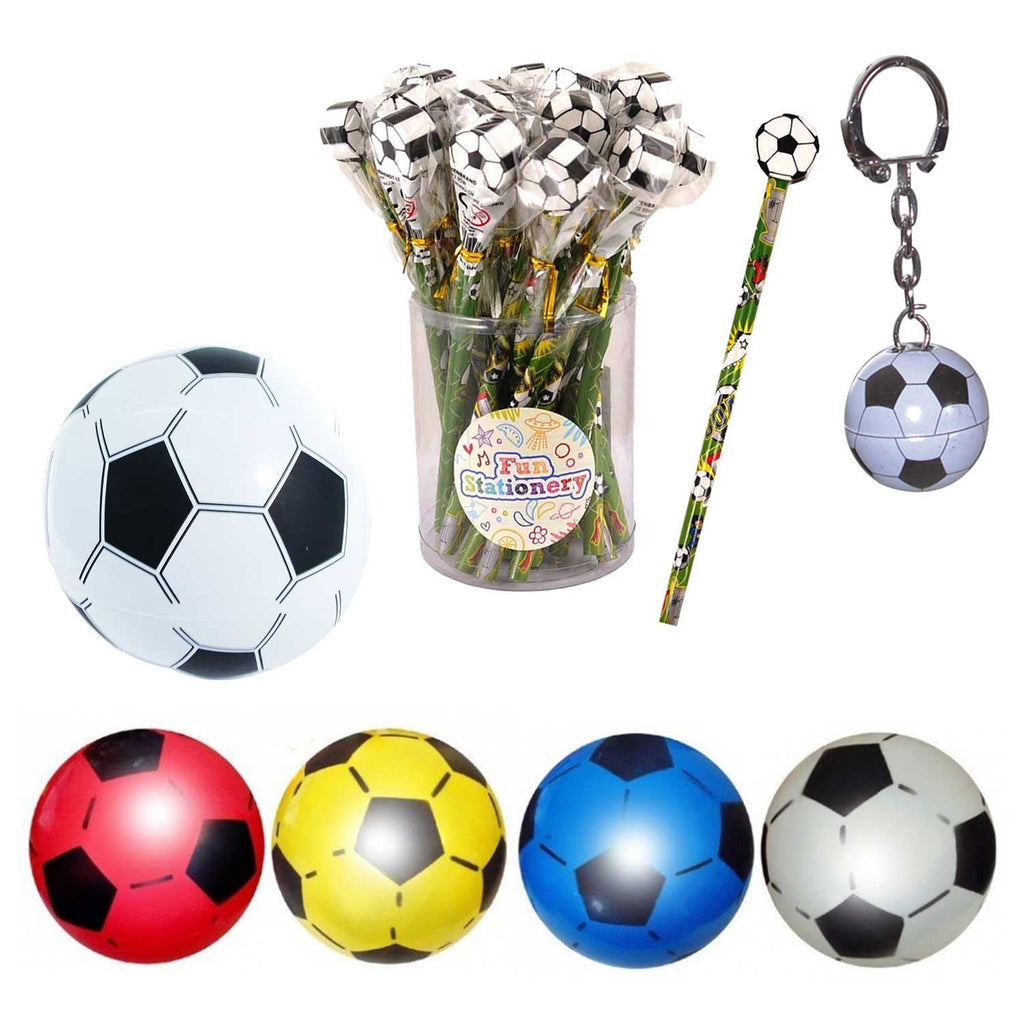 - 60 uninflated plastic footballs in assorted colours (flat packed)
