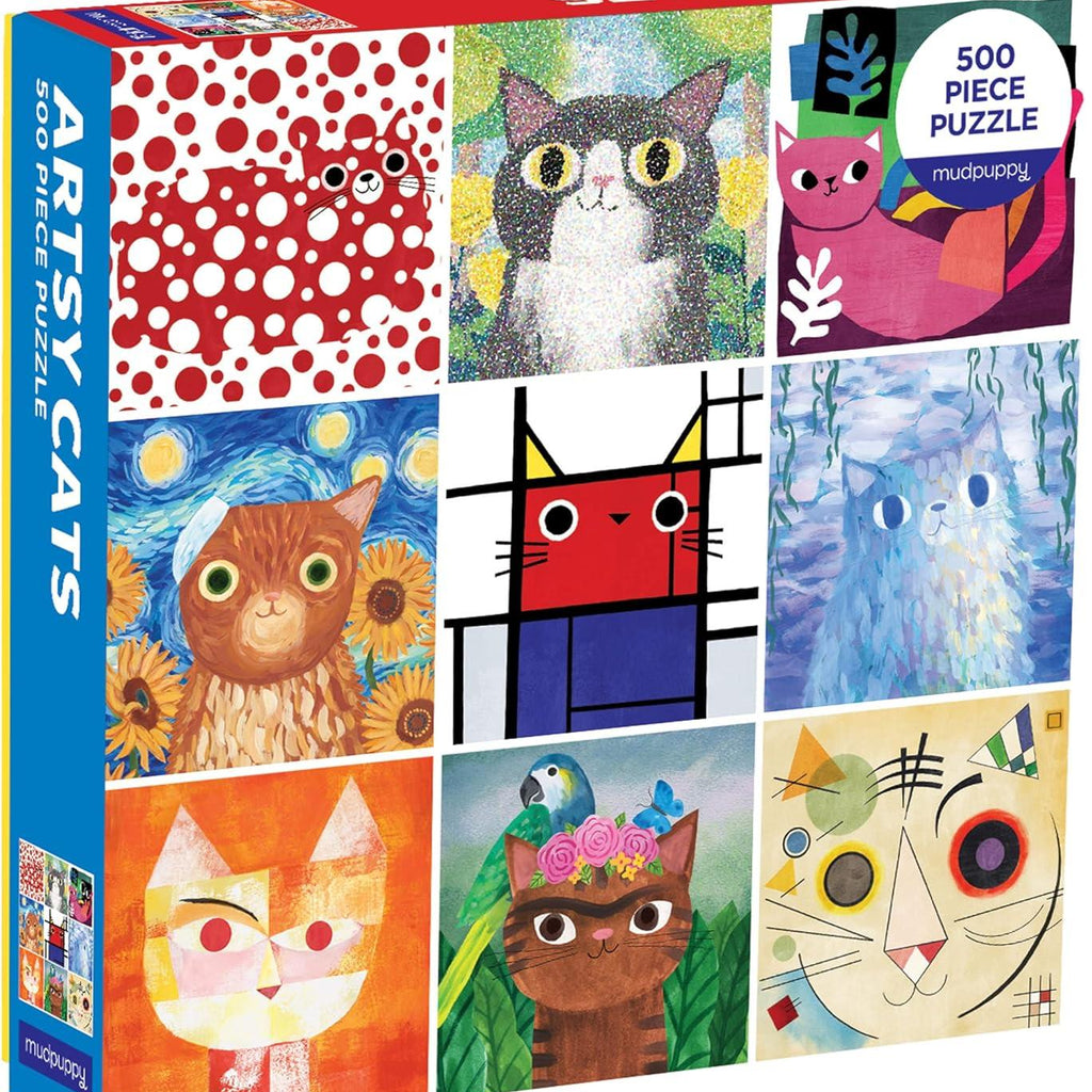 Artsy Cats is a quality 500-piece jigsaw puzzle by Galison Mudpuppy.