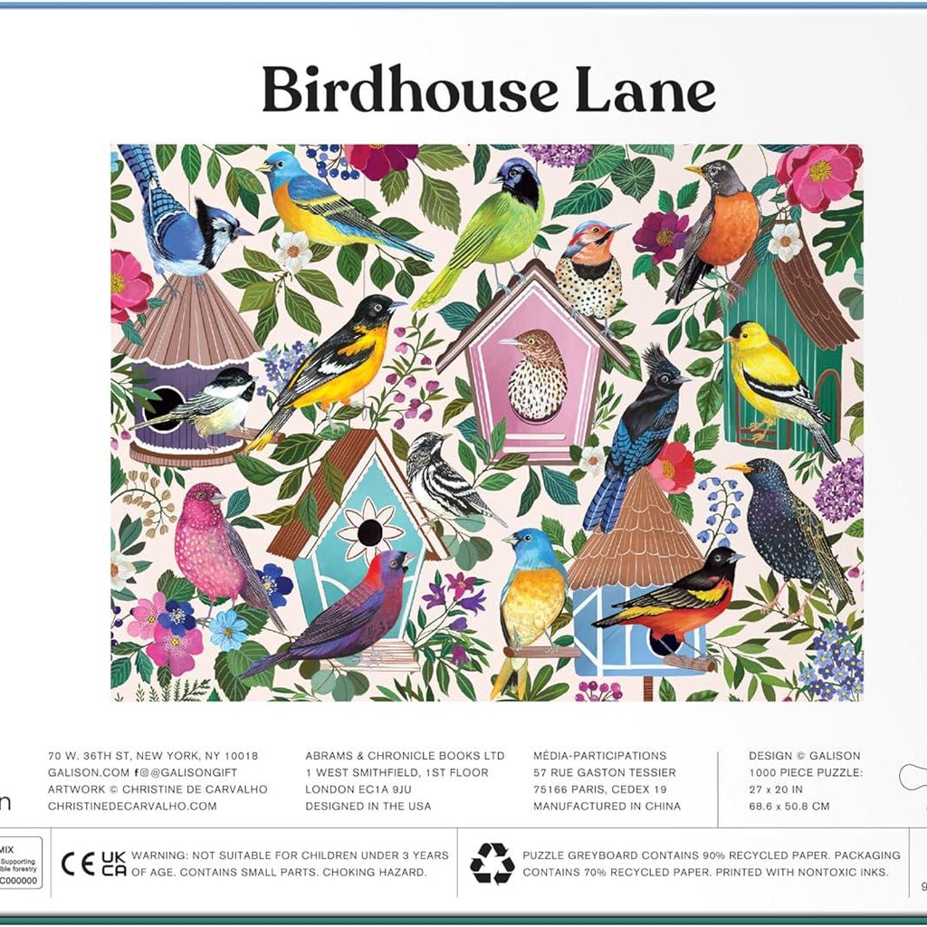 Birdhouse Lane is a quality 1000-piece jigsaw puzzle by Galison.