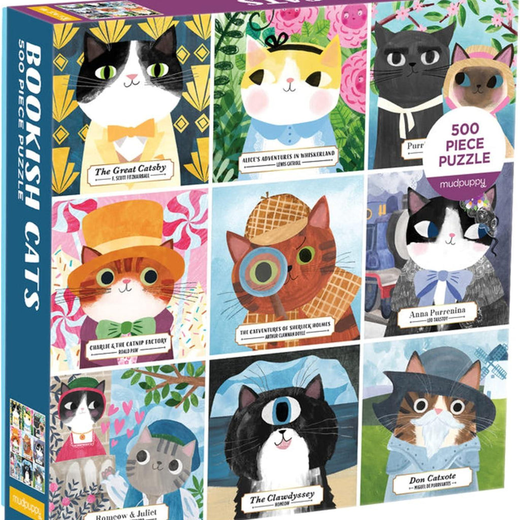 Bookish Cats is a quality 500-piece jigsaw puzzle by Galison Mudpuppy.
