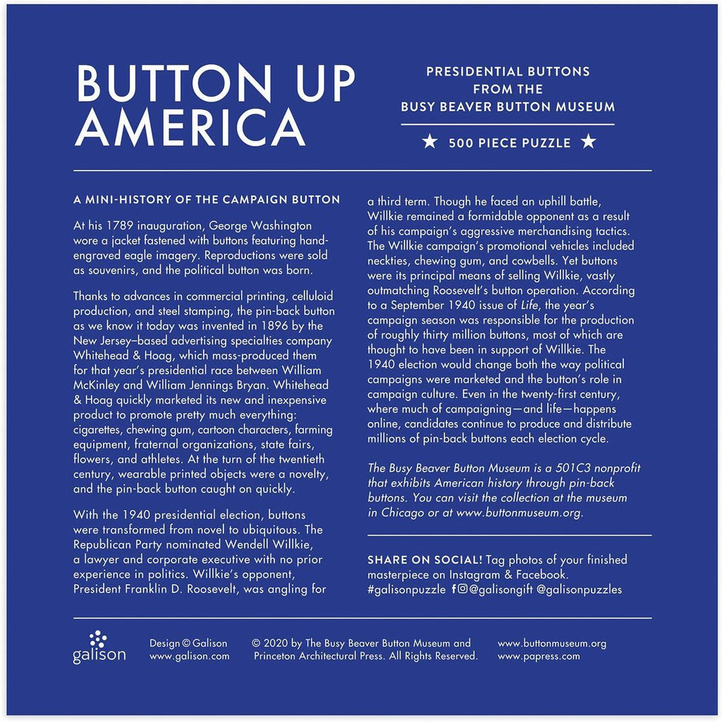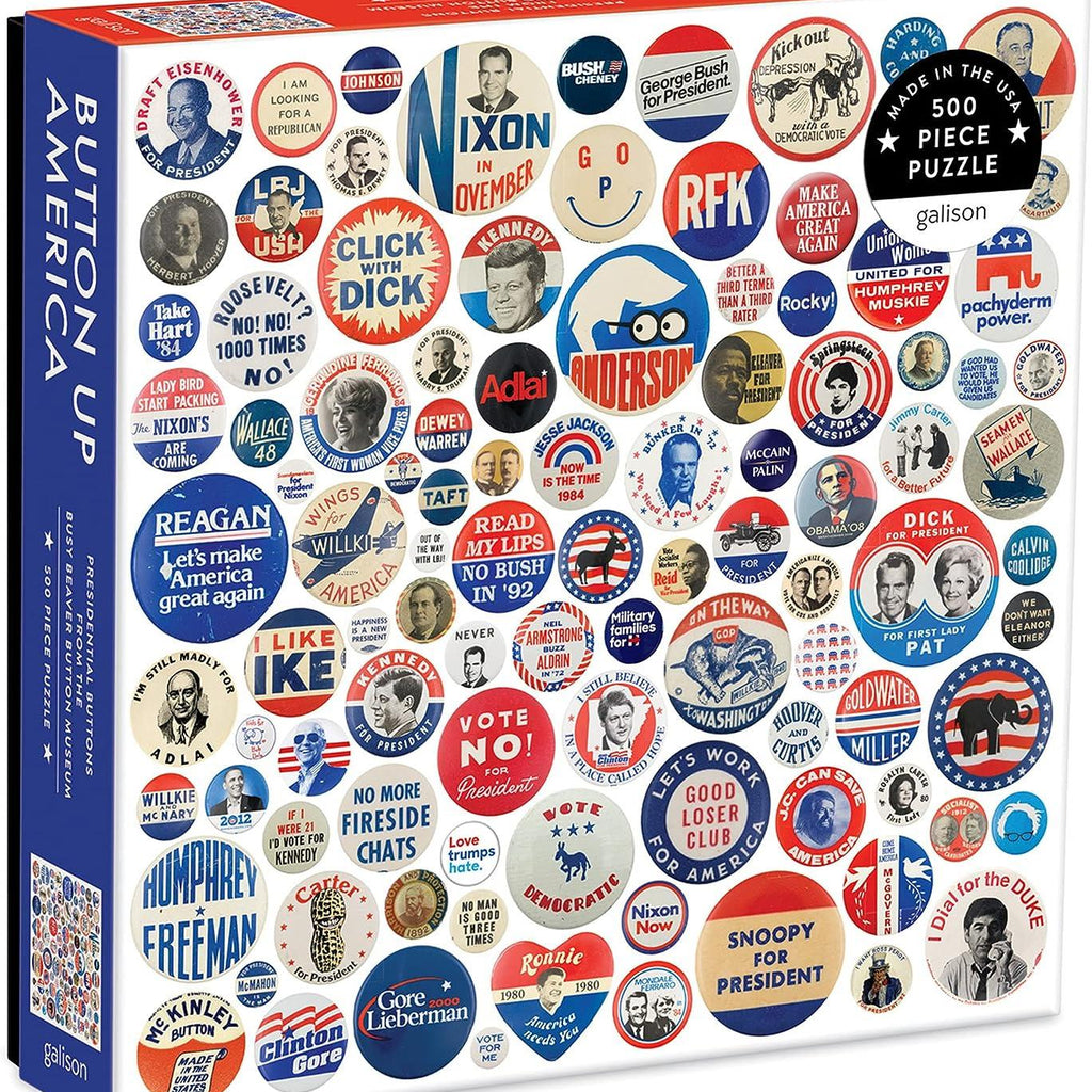 Button Up America is a quality 500-piece jigsaw puzzle by Galison Mudpuppy.