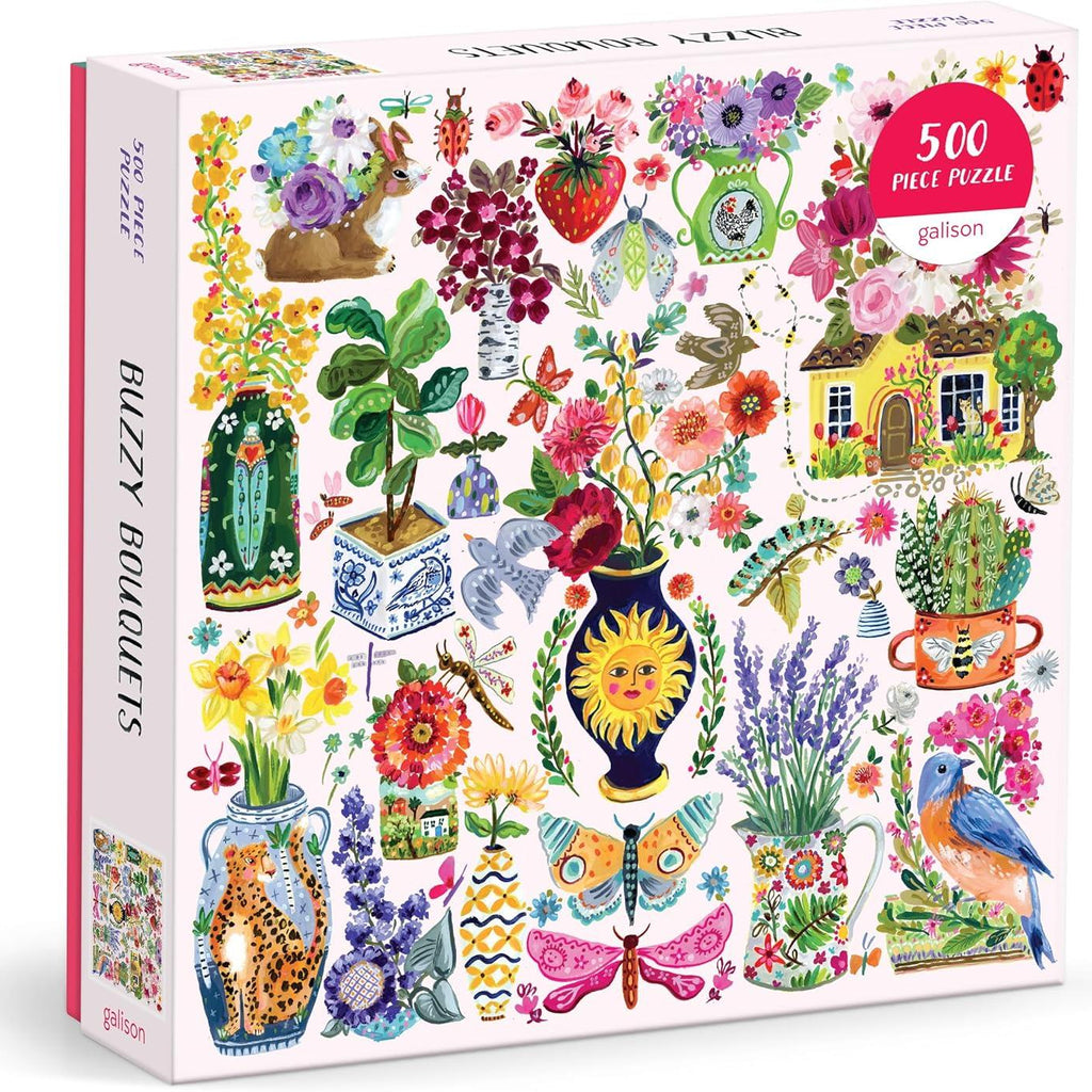 Buzzy Bouquets is a quality 500-piece jigsaw puzzle by Galison.