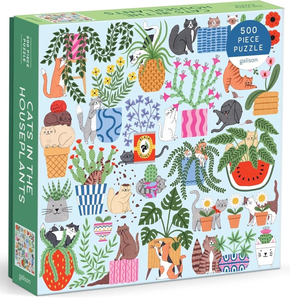 Cats in the Houseplants is a quality 500-piece jigsaw puzzle by Galison.