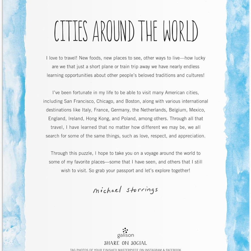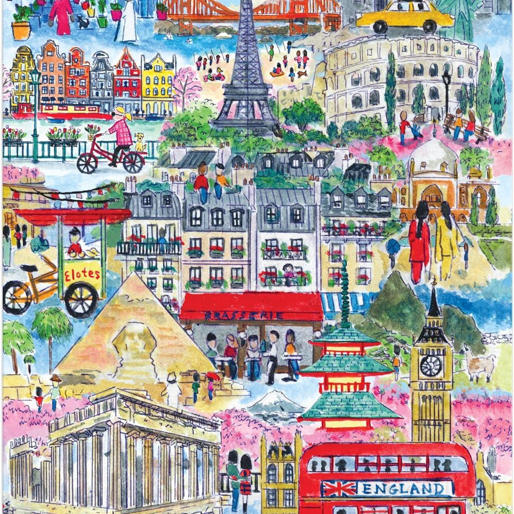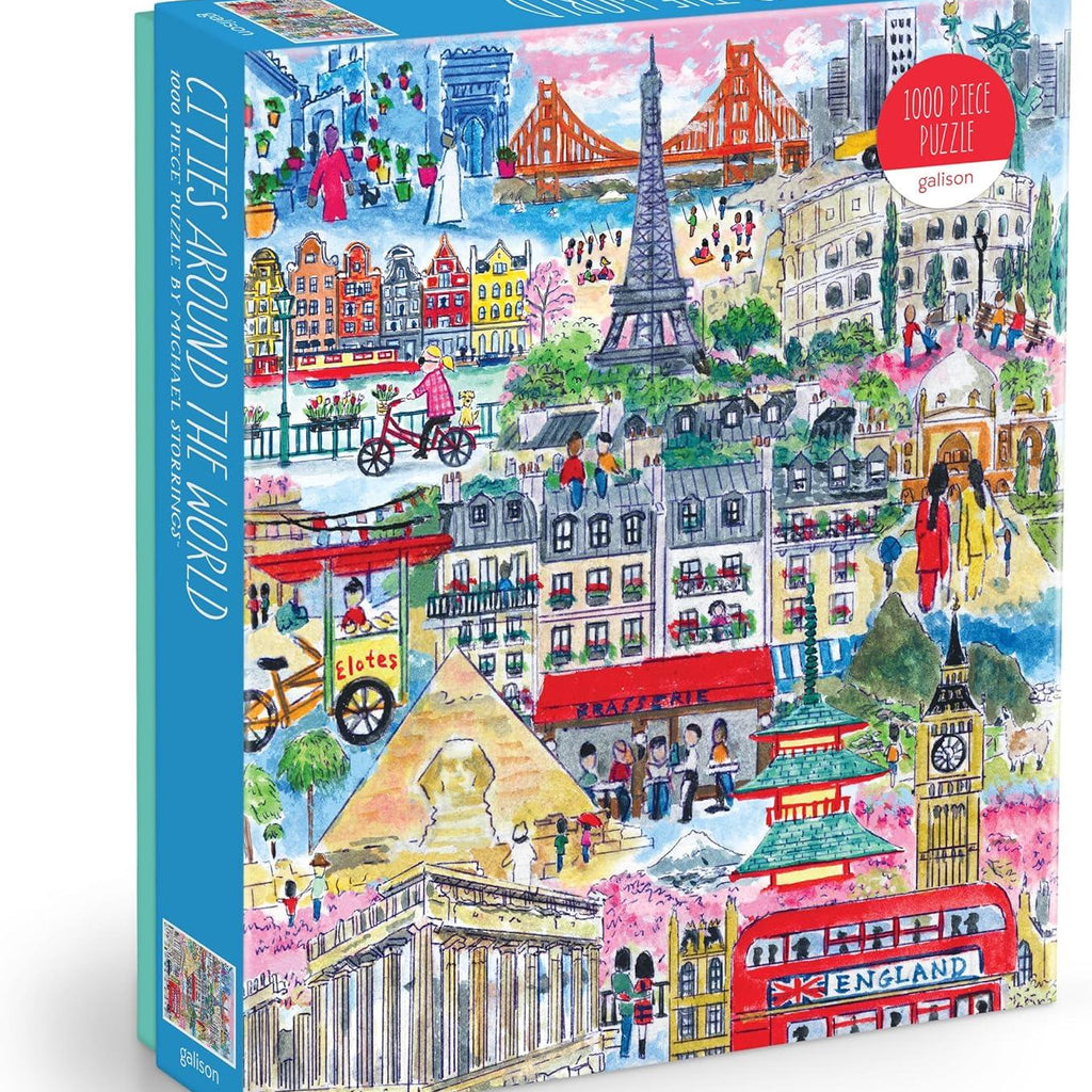 Cities Around the World is a quality 1000-piece jigsaw puzzle from Galison's Michael Storrings Collection.