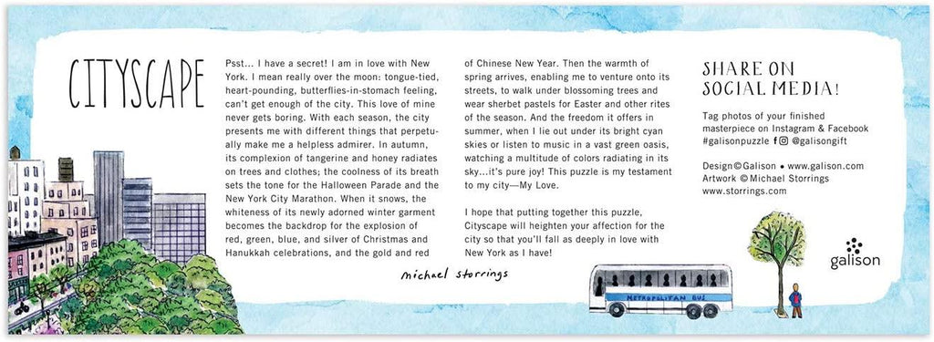 Cityscapes is a quality 1000-piece panorama jigsaw puzzle by Galison Mudpuppy's Michael Storrings Collection.