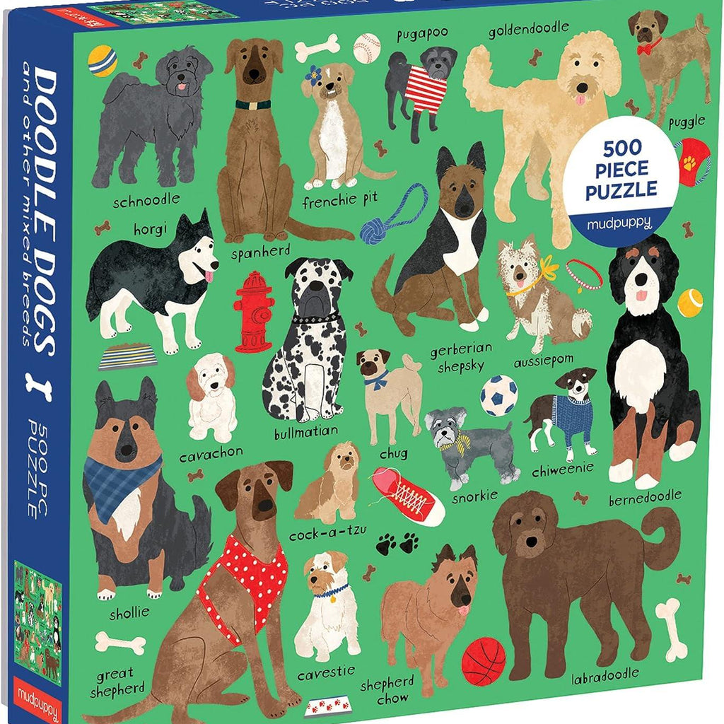 Doodle Dogs and Other Mixed Breeds is a quality 500-piece jigsaw puzzle by Galison Mudpuppy.
