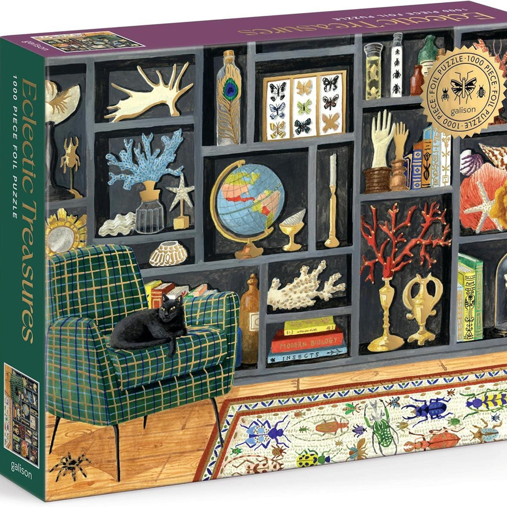 Eclectic Treasures is a quality 1000-piece foil jigsaw puzzle by Galison.