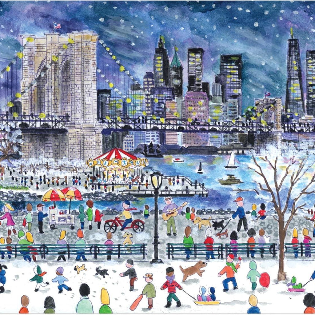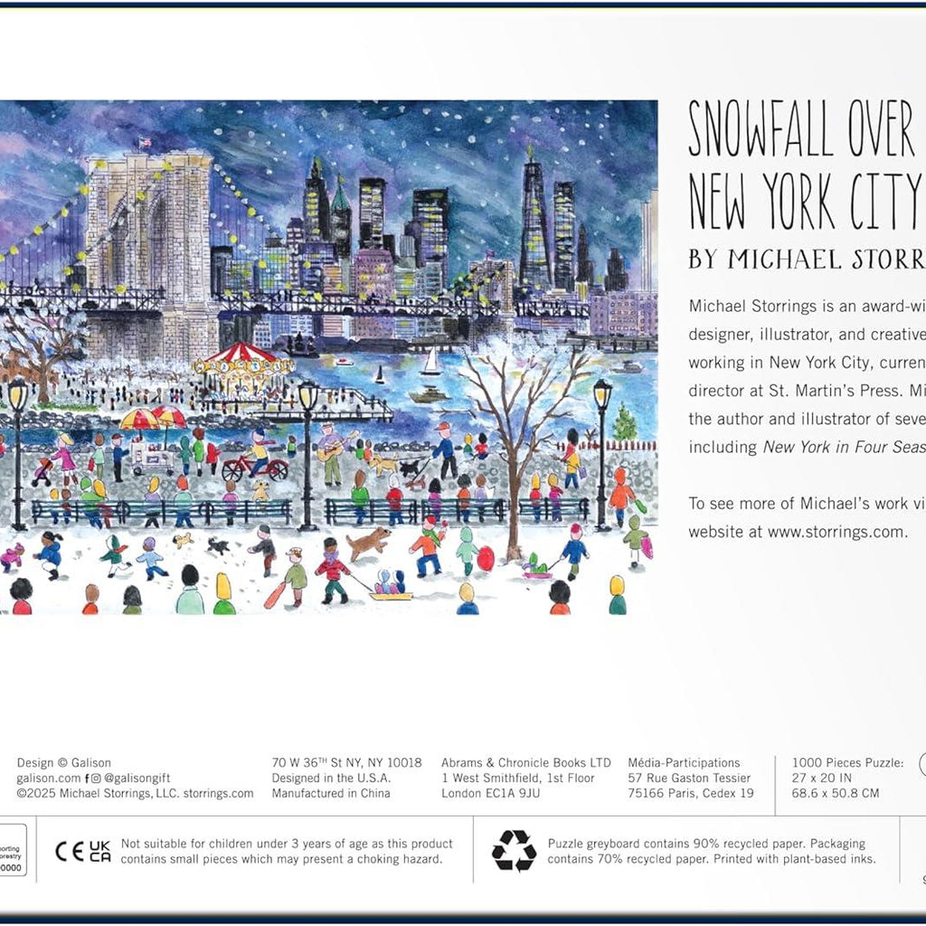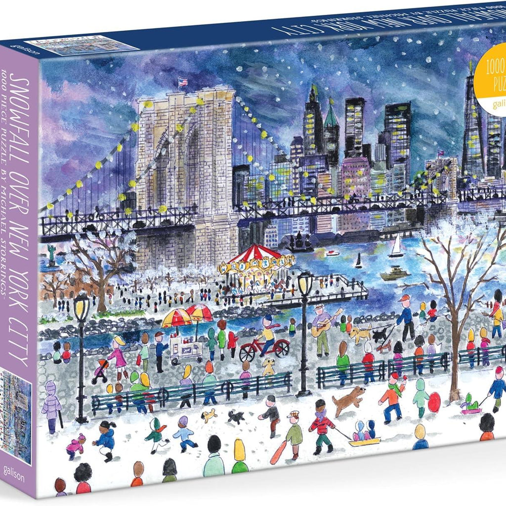 Snowfall Over New York City is a quality 1000-piece jigsaw puzzle by Galison's Michael Storrings Collection