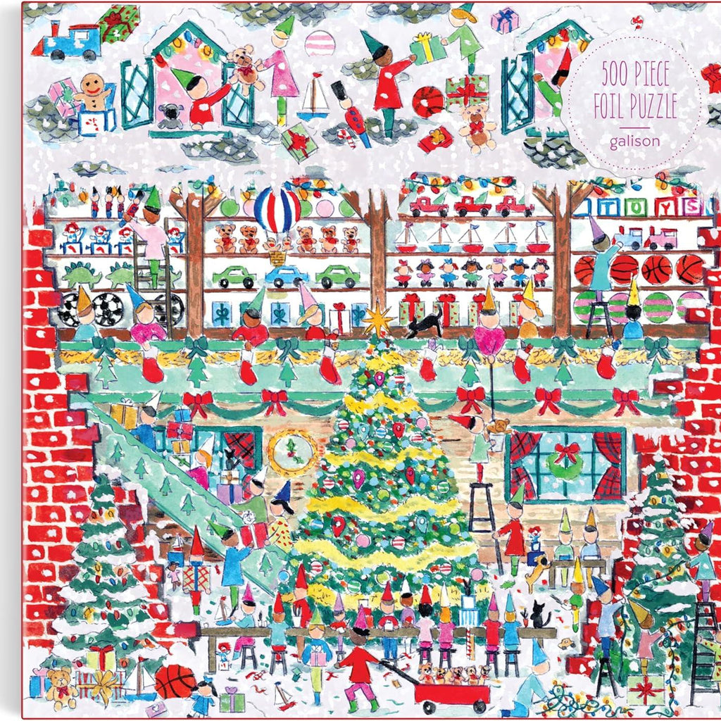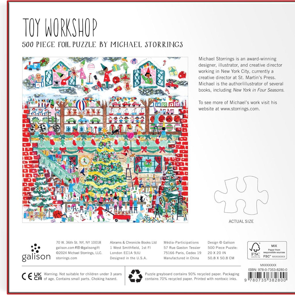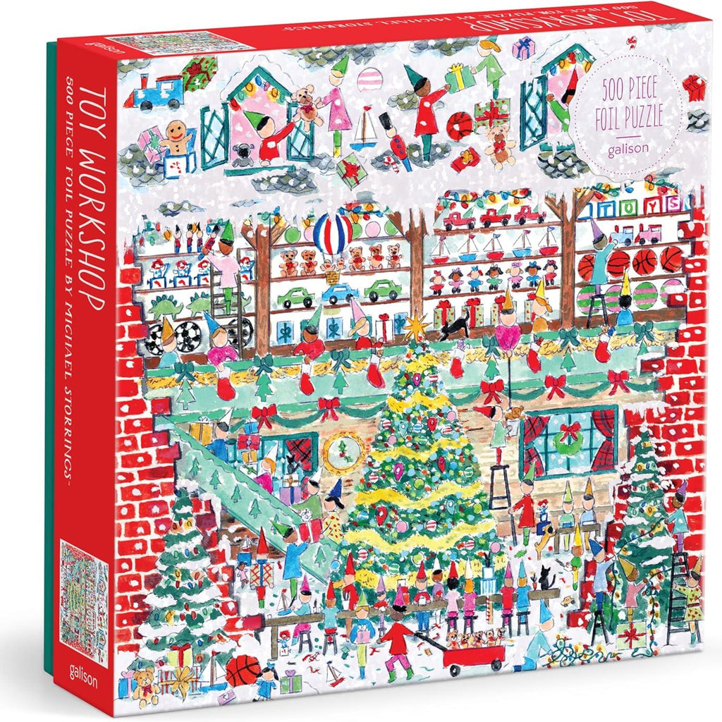 Toy Workshop is a quality 500-piece foil jigsaw puzzle from Galison's Michael Storrings Collection.