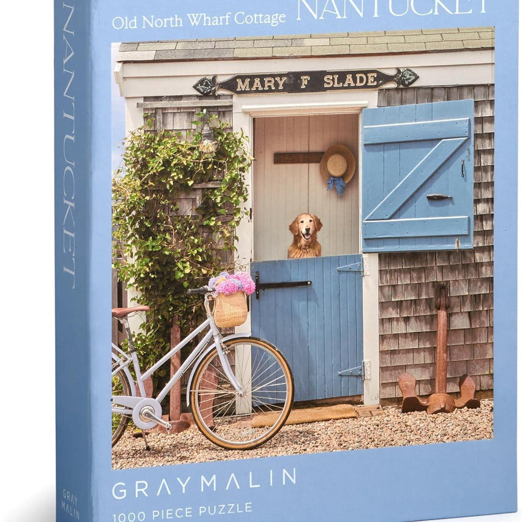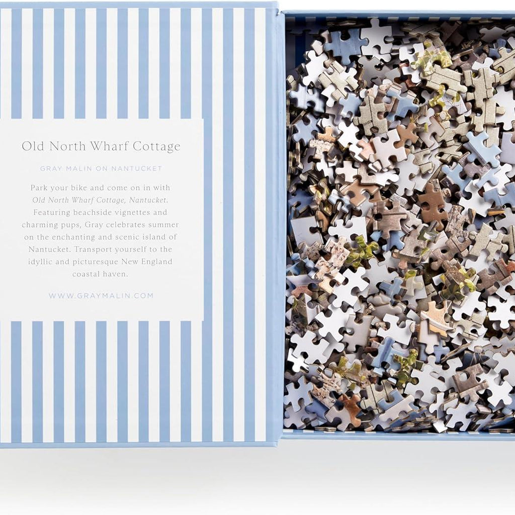 Come on a picturesque journey with this enchanting 1000-piece puzzle featuring the timeless charm of an Old North Wharf Cottage, captured through the lens of renowned photographer Gray Malin. Each piece is a portal to tranquility, inviting you to immerse yourself in the quaint beauty of coastal living. Packaged within a box cleverly disguised as a book with a magnetic closure,