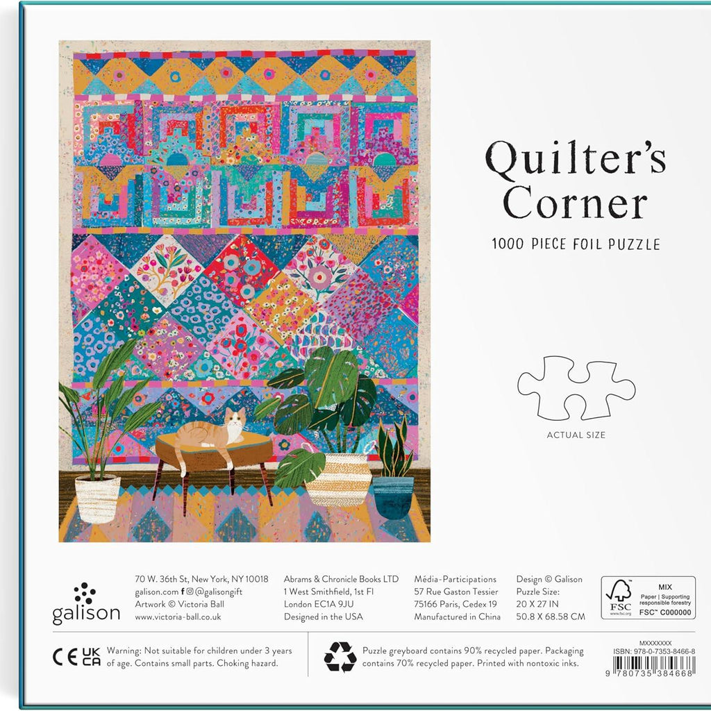 Quilter's Corner is a quality foil 1000-piece jigsaw puzzle by Galison.