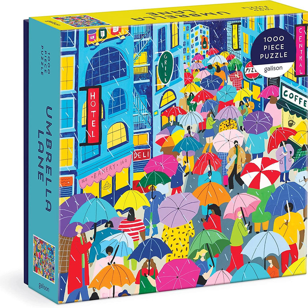Umbrella Lane is a quality 1000-piece jigsaw puzzle by Galison.