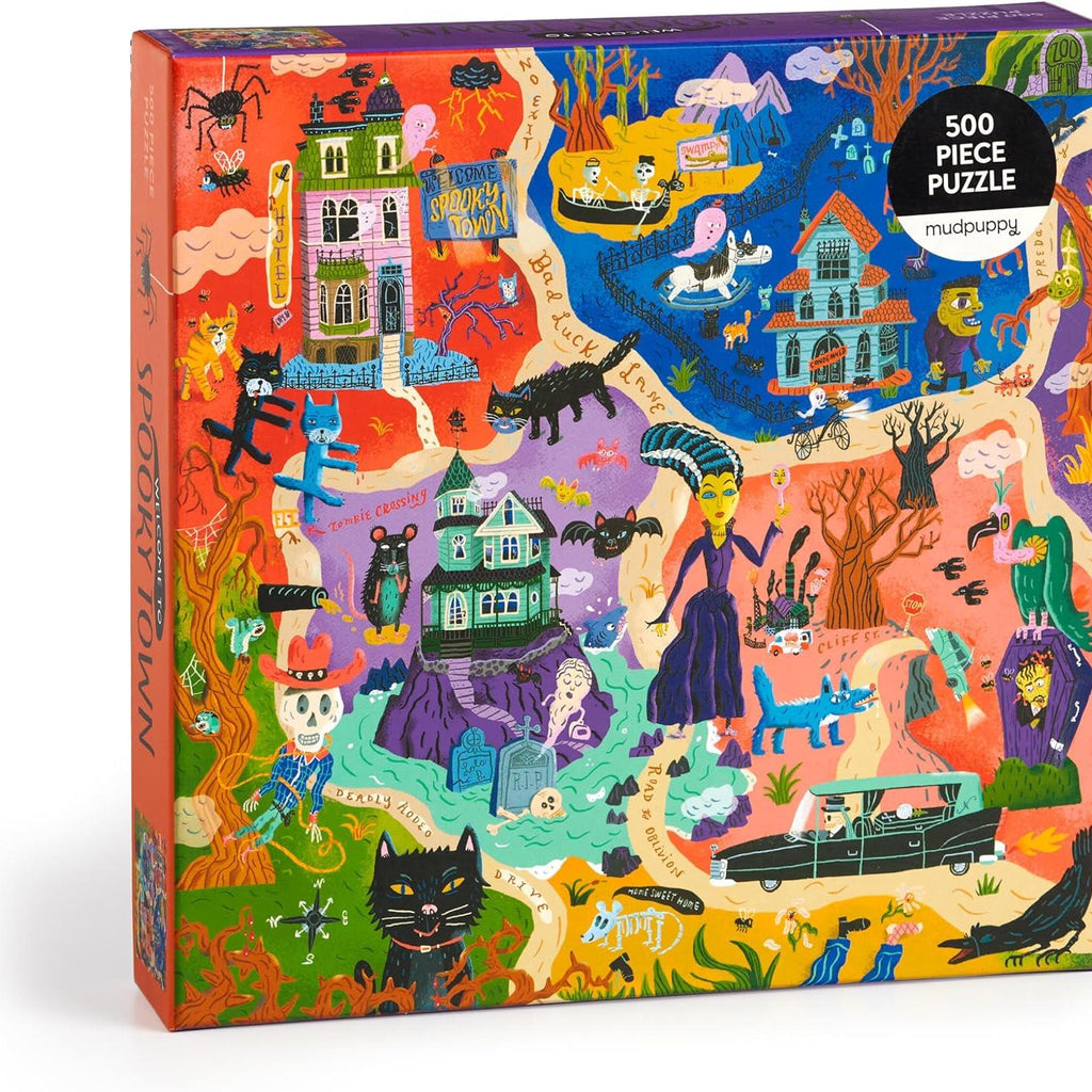 Welcome to Spooky Town is a quality 500-piece jigsaw puzzle by Galison.