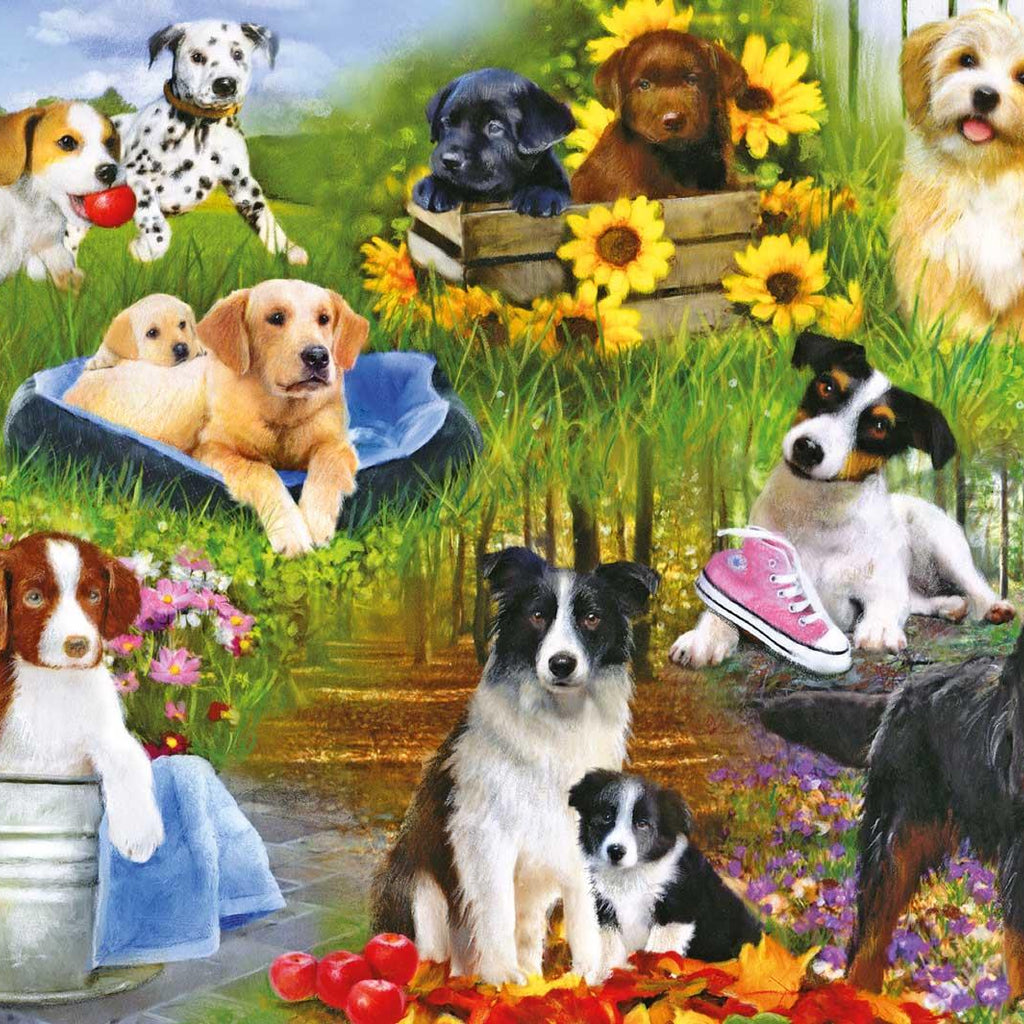 Playful Pups is a high quality 500 piece jigsaw puzzle by Gibsons.