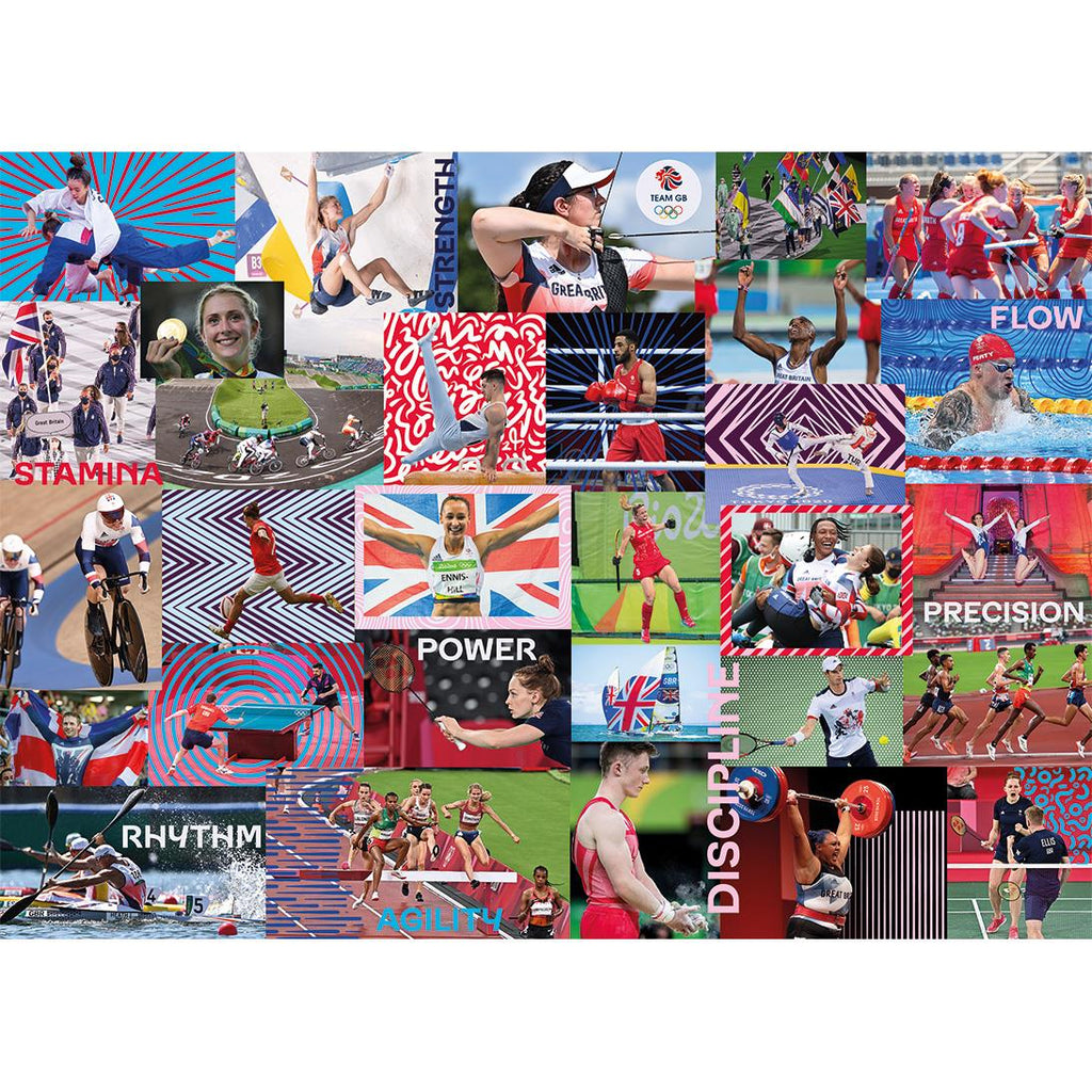 Team GB: Winning Memories is a quality 1000-piece jigsaw puzzle by Gibsons Games in celebration of British participants in the Summer Olympics 2024 in Paris.