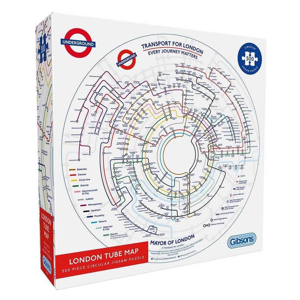 TFL The Circular Underground Map is a quality 500-piece circular jigsaw puzzle by Gibsons' Transport for London Collection