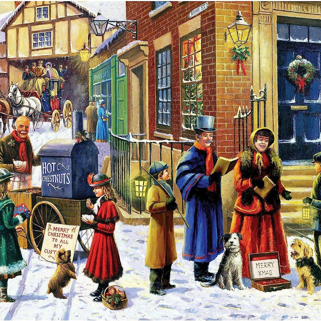 The Carol Singers is a quality 500 piece jigsaw puzzle by Gibsons.