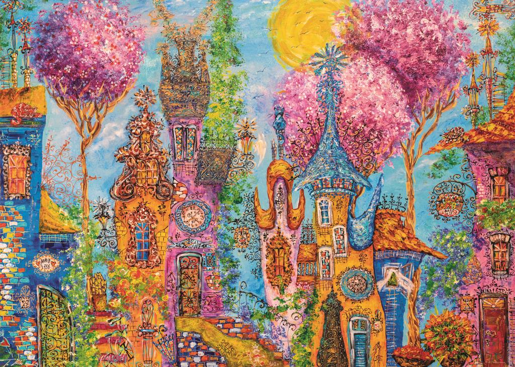 Pink Trees, Charming Village is a quality 1000-piece puzzle from Heye