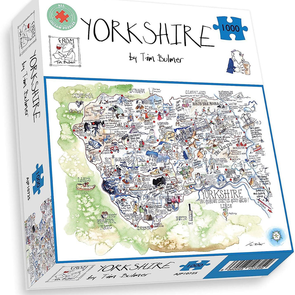 Yorkshire is a comic 1000 piece quality jigsaw puzzle from Tim Bulmer’s Map Collection.