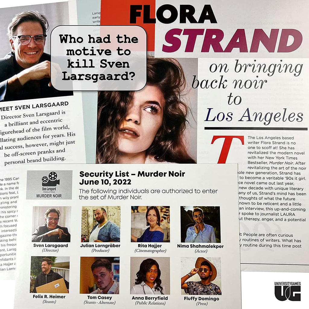 Director Sven Larsgaard is famous for his detailed pranks and hi-jinks on set. During the filming of his latest project, entitled Murder Noir, Sven is found dead with a fake gunshot wound. Was it a prank gone wrong… or murder?