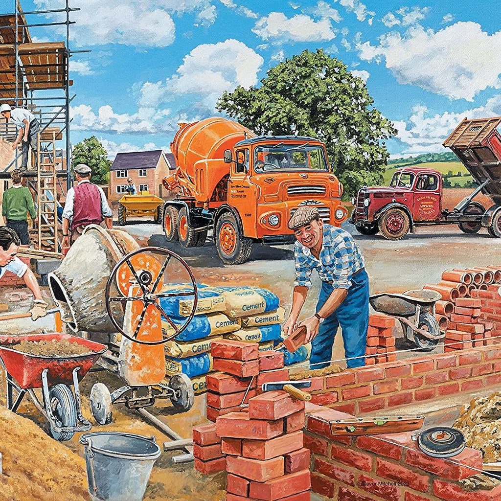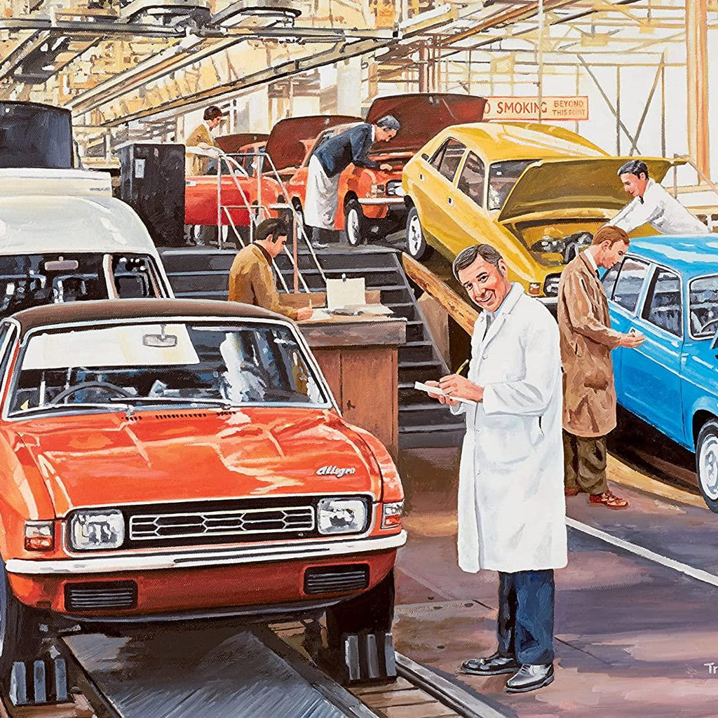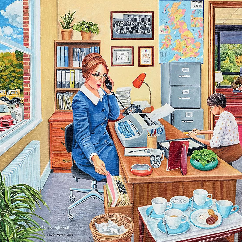 These bright and cheerful puzzles take you back to the world of work in the 1960s and 1970s. The Secretary takes us into office life, when shorthand was essential and an electric typewriter was state-of-the-art. The Factory Worker captures a Quality Control Inspector working at the end of a motor car production line, whilst the Builder shows the hustle and bustle involved in creating a new housing estate. Lastly, the WPC is on duty in central London, keeping traffic flowing and helping pedestrians to safely navigate the busy roads.