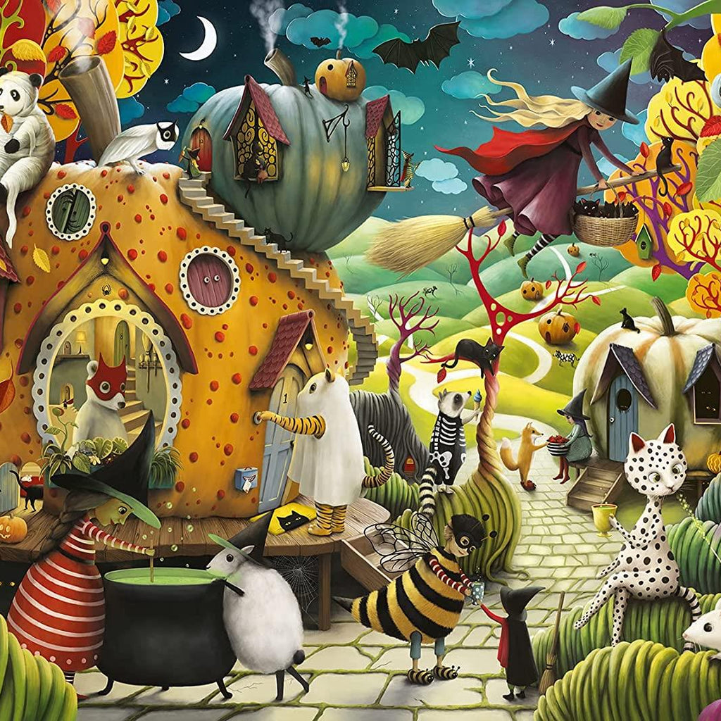 Happy Halloween is a premium quality 1000-piece cardboard jigsaw puzzle from Ravensburger.