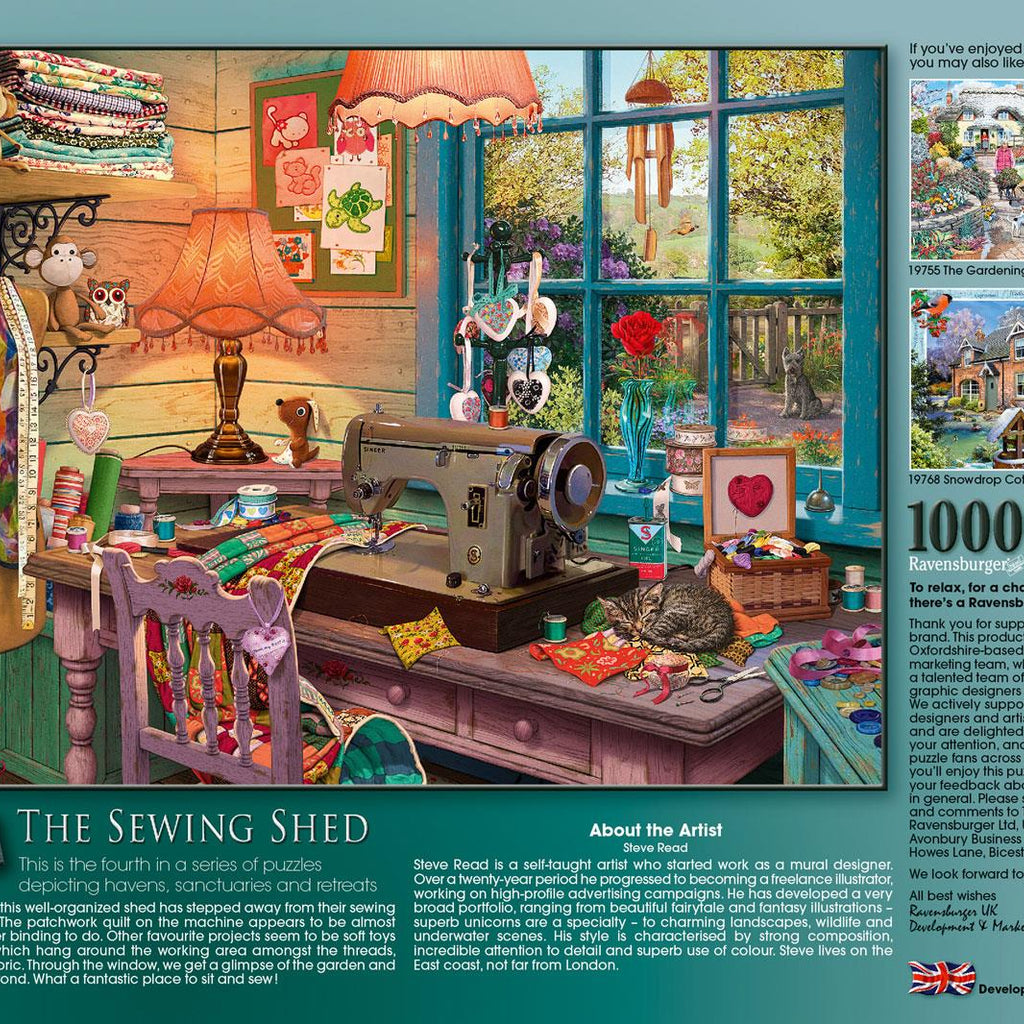 My Haven No. 4 The Sewing Shed is a high quality 1000 piece cardboard jigsaw puzzle from the Ravensburger My Haven range.