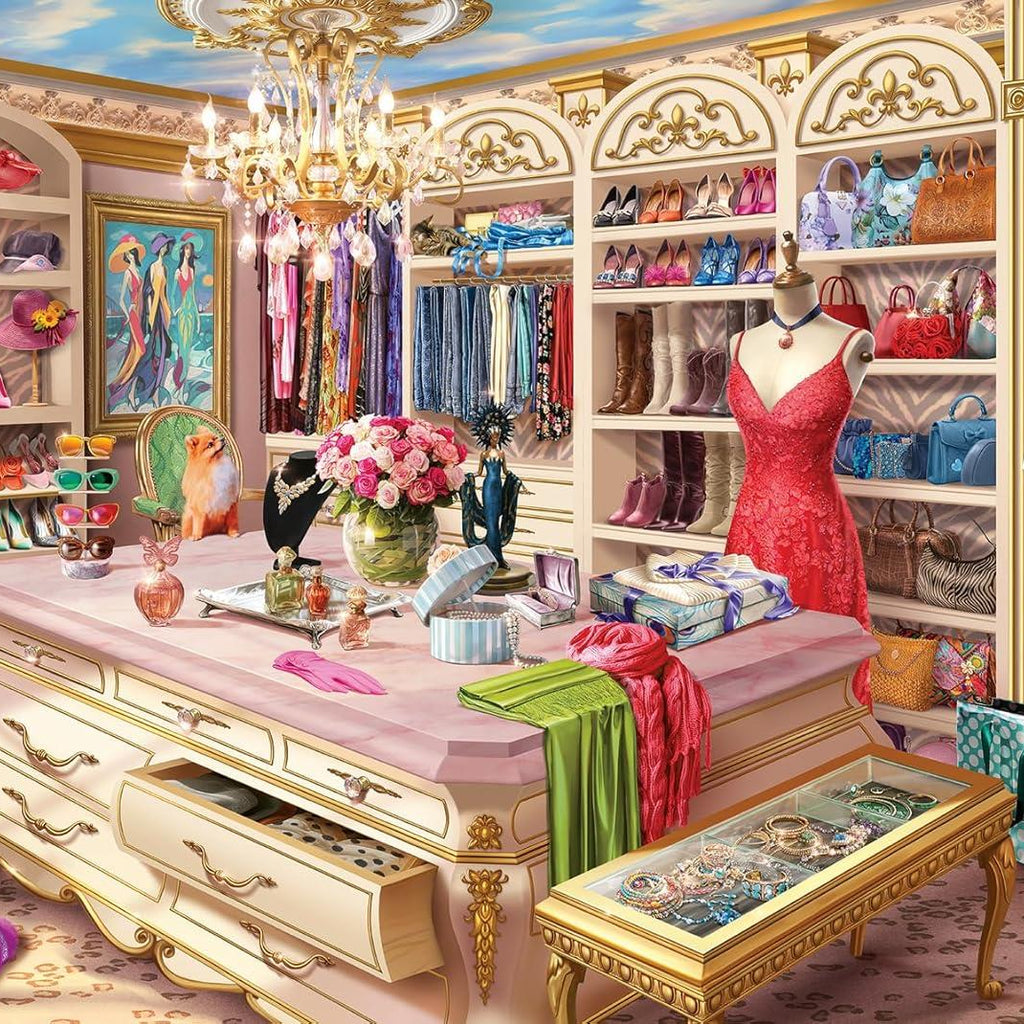 The Coveted Closet is a premium quality 1000-piece cardboard jigsaw puzzle from Ravensburger.