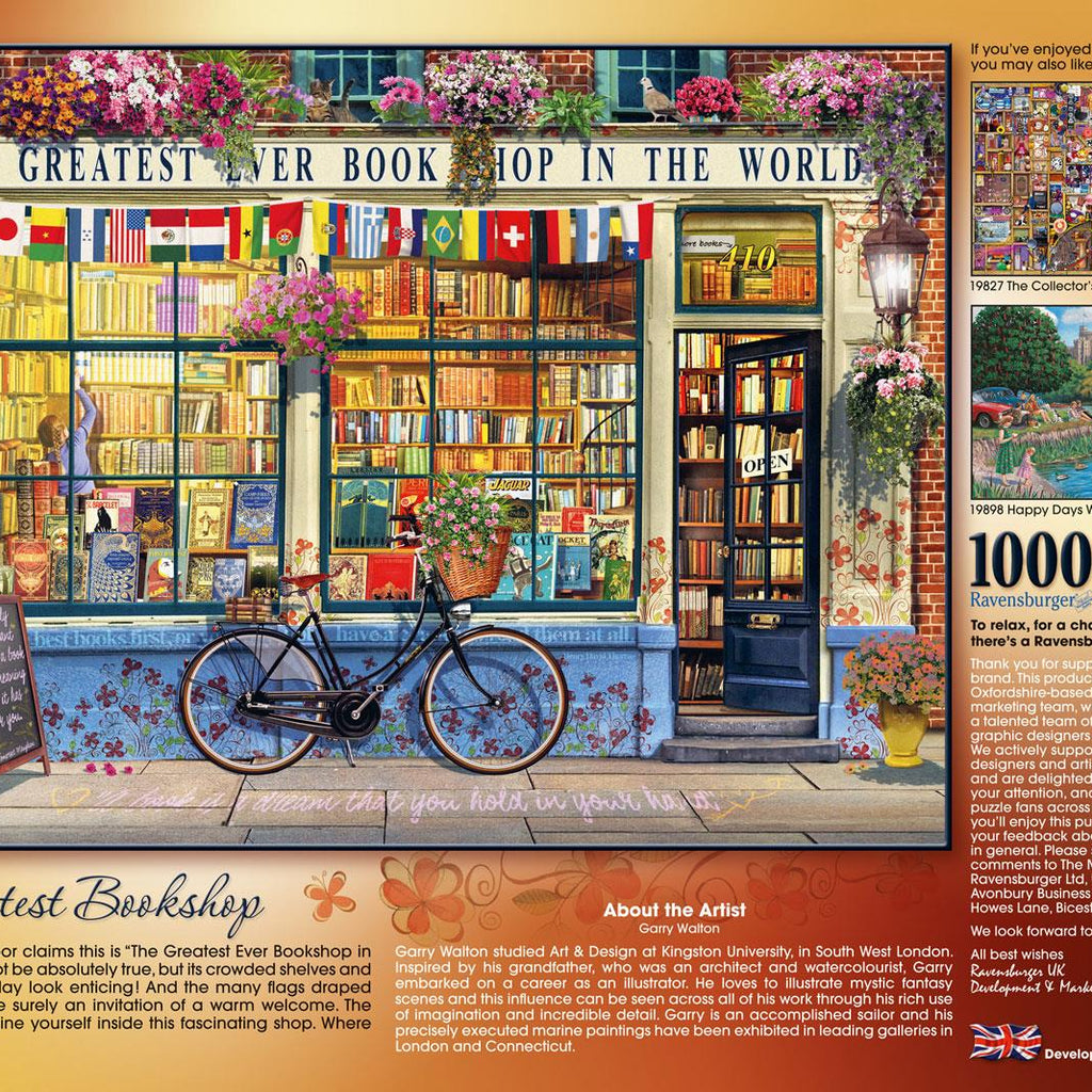 The Greatest Bookshop is a quality 1000-piece cardboard jigsaw puzzle from Ravensburger