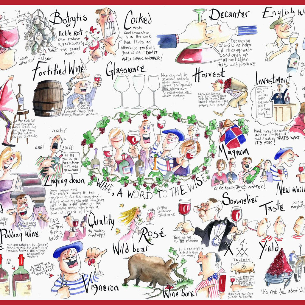 Wine is a comic 1000 piece quality jigsaw puzzle by Tim Bulmer.