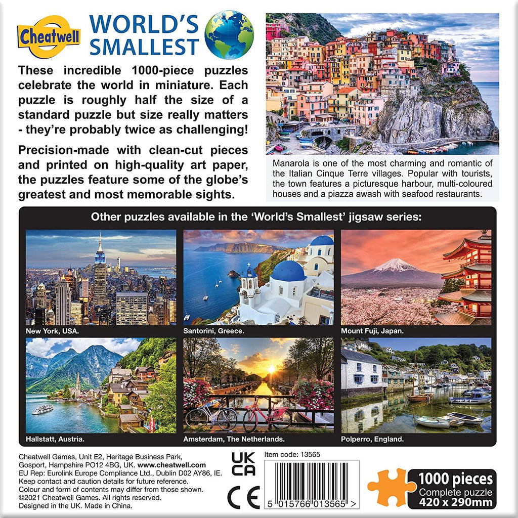 World's Smallest 1000 Piece Jigsaw - Manarola is a quality 1000 piece jigsaw puzzle from Cheatwell Games's World's Smallest Collection.