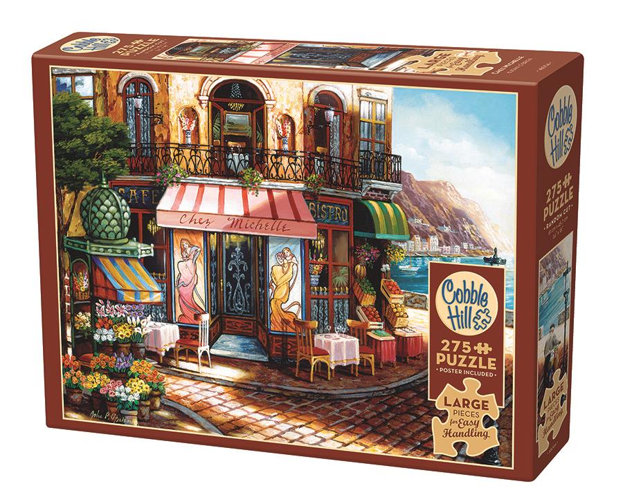 Chez Michelle is a quality 275-piece jigsaw puzzle from Cobble Hill with extra extra large (XXL) pieces.