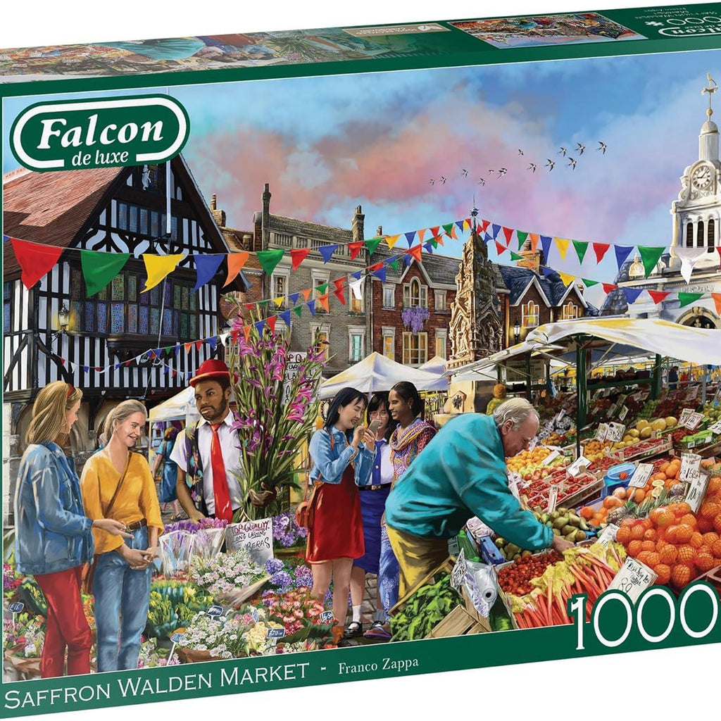 Saffron Walden Market is a quality 1000-piece jigsaw puzzle which is part of the Falcon Deluxe Scenery Collection.