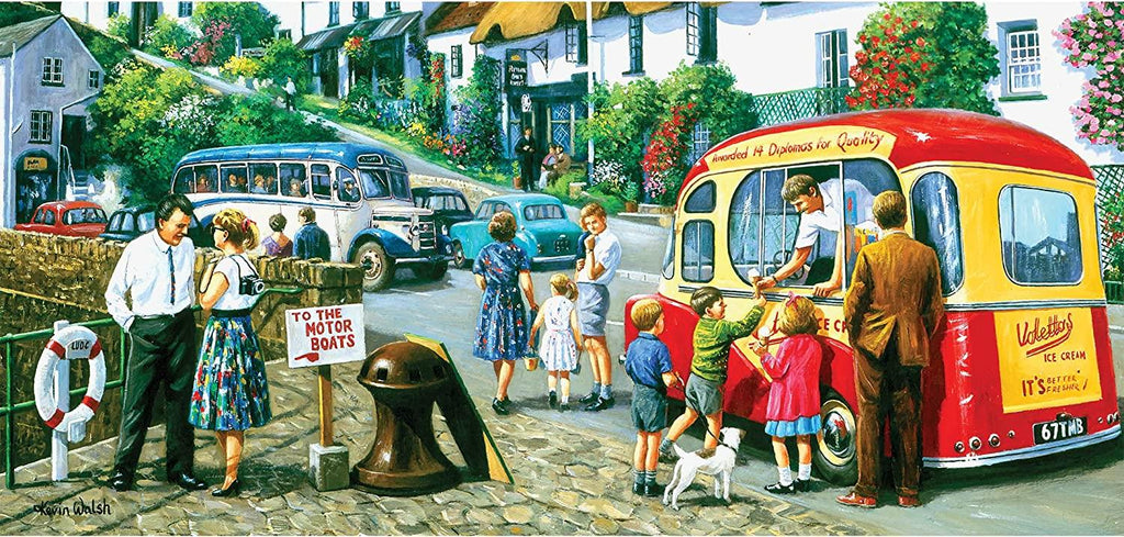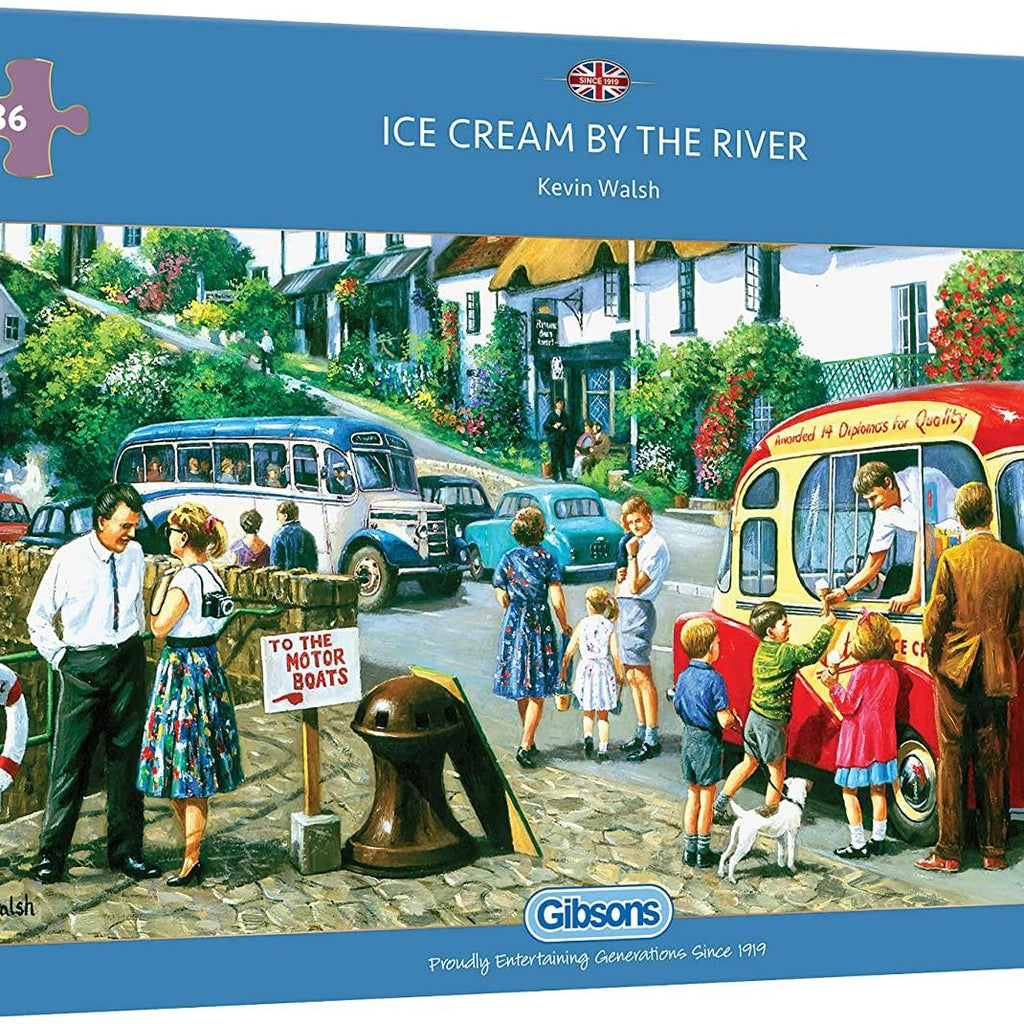Ice Cream by the River is a quality 636-piece panoramic jigsaw puzzle by Gibsons Games.