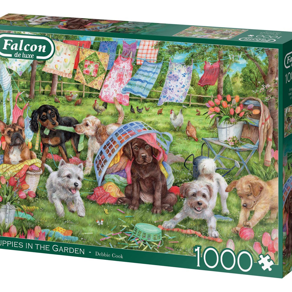 Puppies in the Garden is a quality 1000-piece jigsaw puzzle which is part of the Falcon Deluxe Animals Collection.