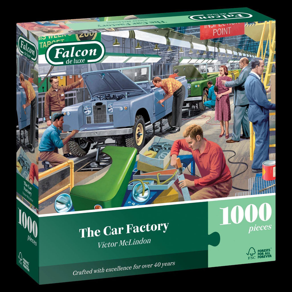 The Car Factory is a quality 1000-piece jigsaw puzzle which is part of the Falcon Deluxe Nostalgia Collection.