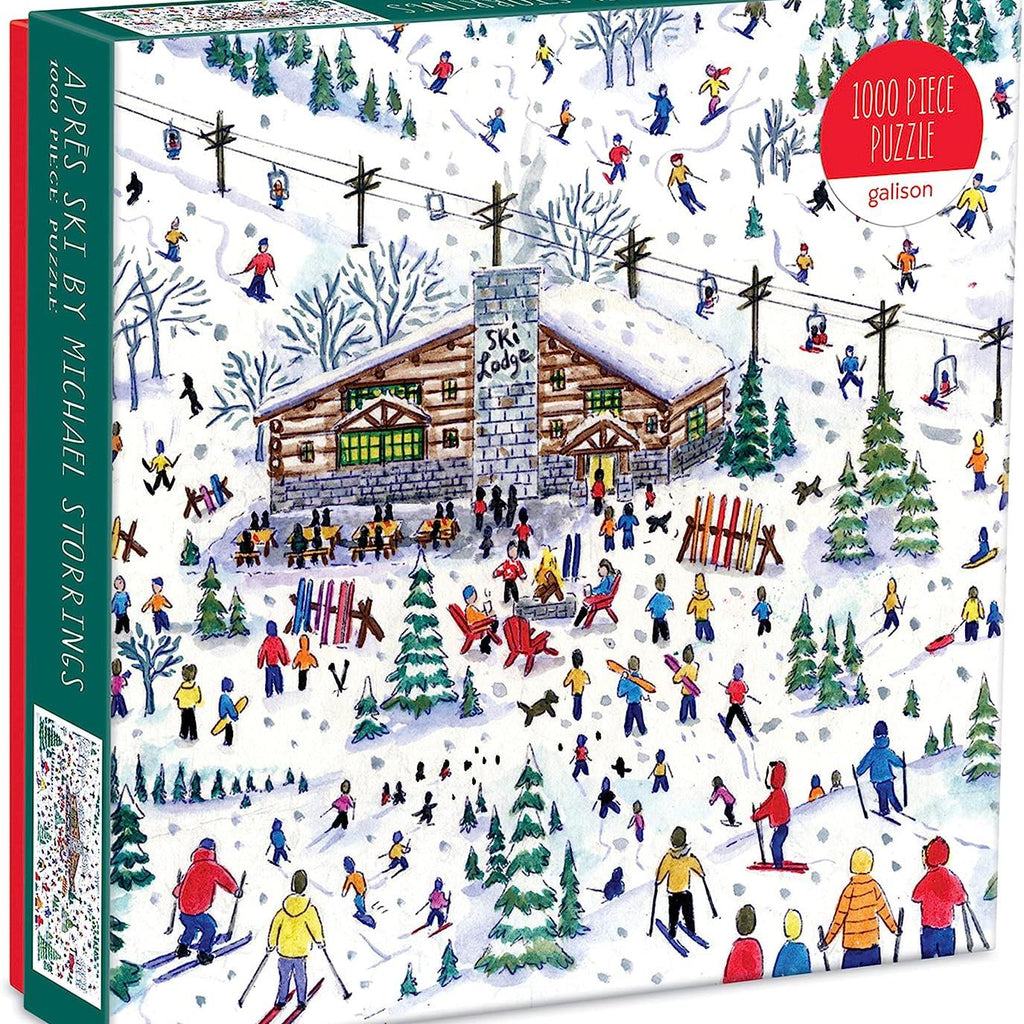 Apres Ski is a quality 1000-piece jigsaw puzzle from Galison's Michael Storrings Collection.